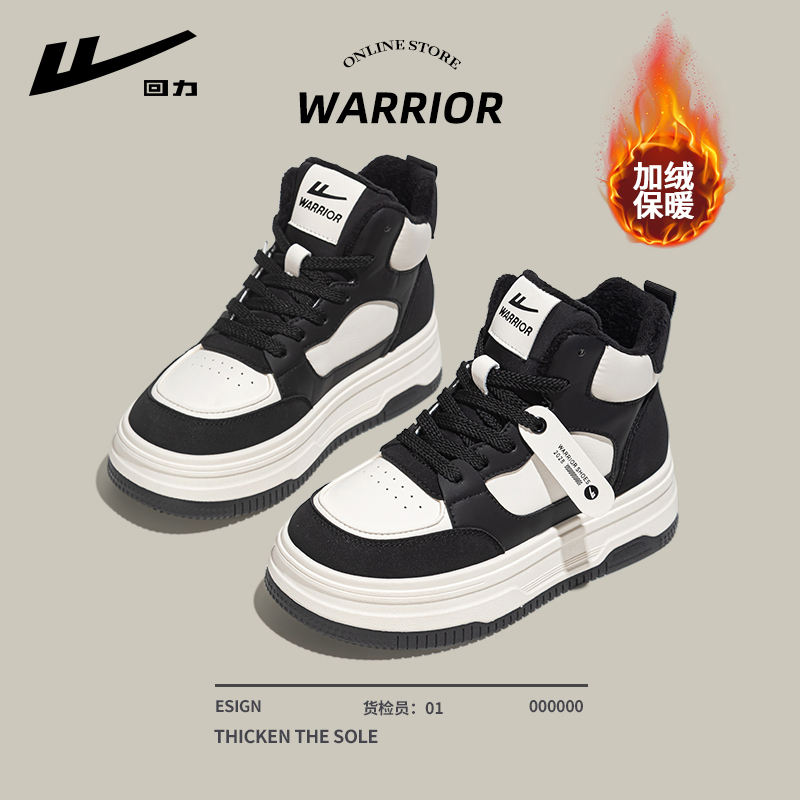 Pull-back high-top shoes women's 2025 new autumn and winter explosive black and white panda shoes thick-soled fleece cotton shoes sneakers shoes