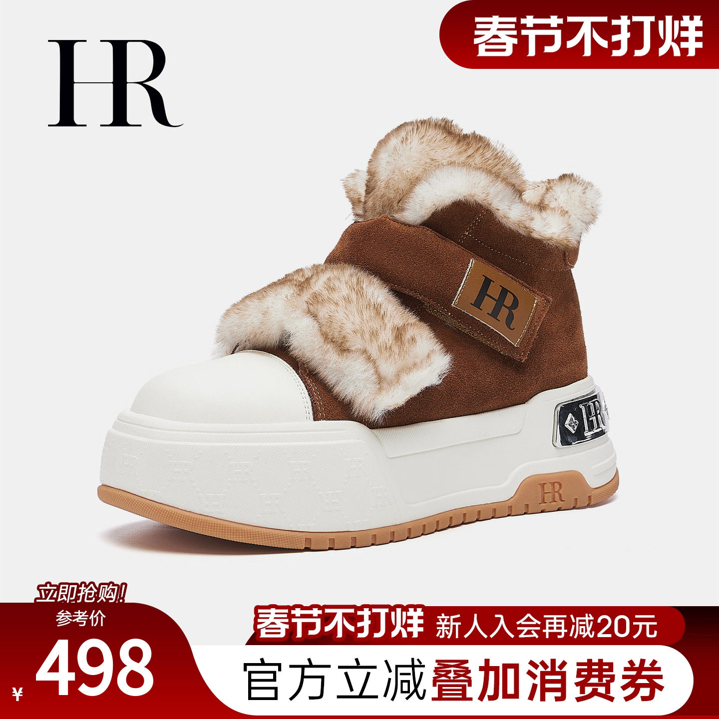 HR Helena High Top Snow Boots 2026 Winter New Women's Shoes Platform Velcro Fleece Warm Wool Shoes