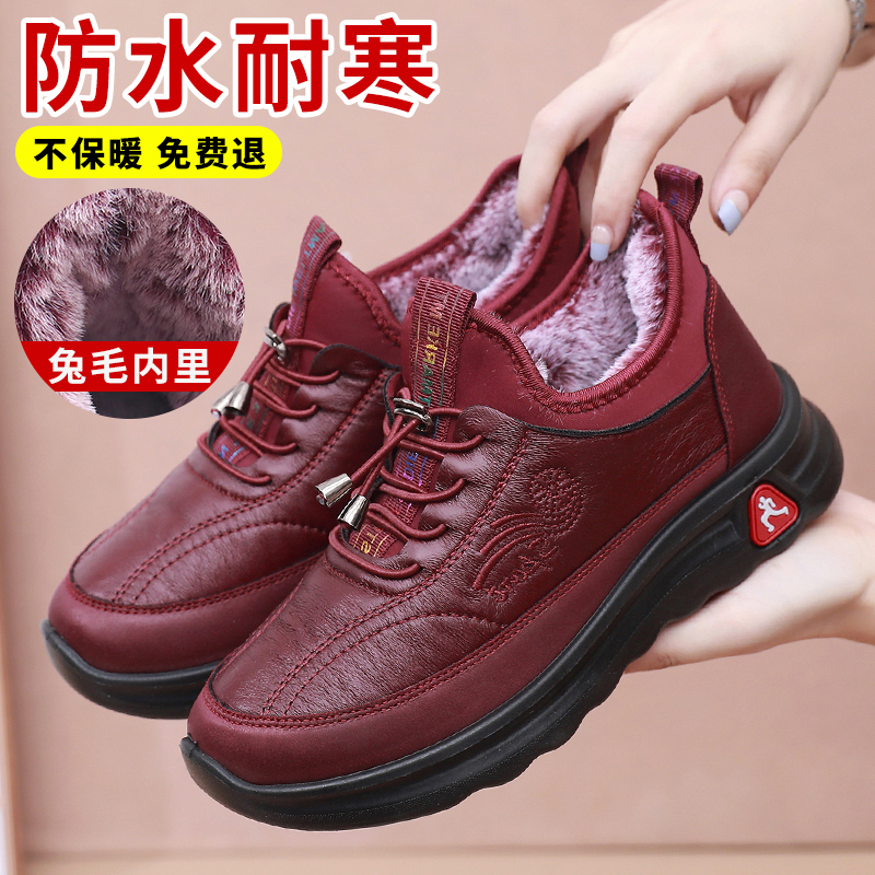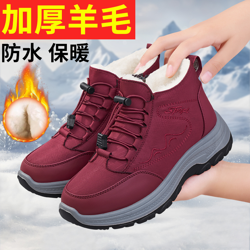 Old Beijing cloth shoes women's winter cotton shoes fleece warm wool mom shoes waterproof anti-slip thickened snow boots for the elderly
