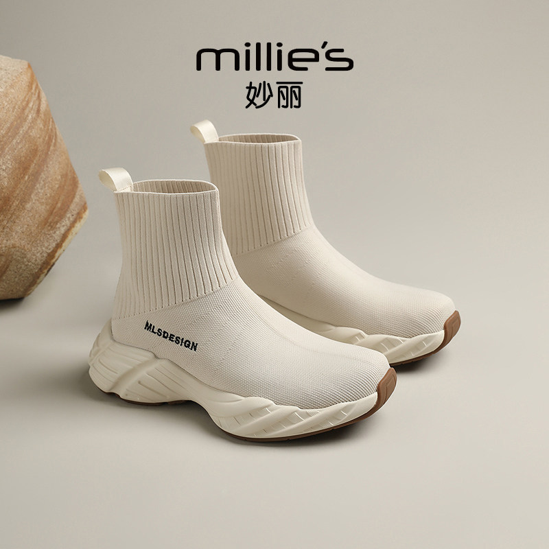 Miaoli high-top shoes women's 2026 new autumn and winter versatile casual sneakers, socks and boots, women's platform heightening socks