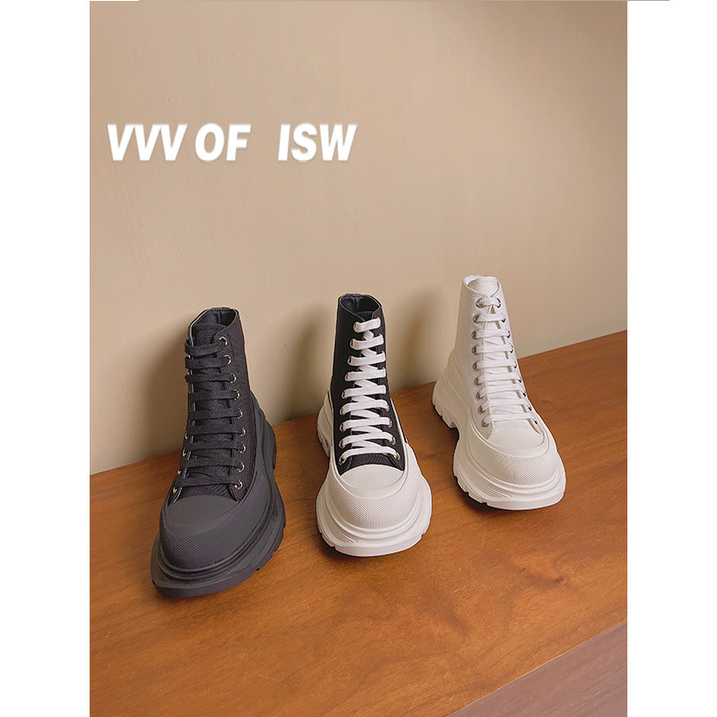 Cabinet quasi-grade McQueen thick-soled high-top canvas shoes to increase height and slimming casual lace-up shoes for autumn and winter couple daddy shoes