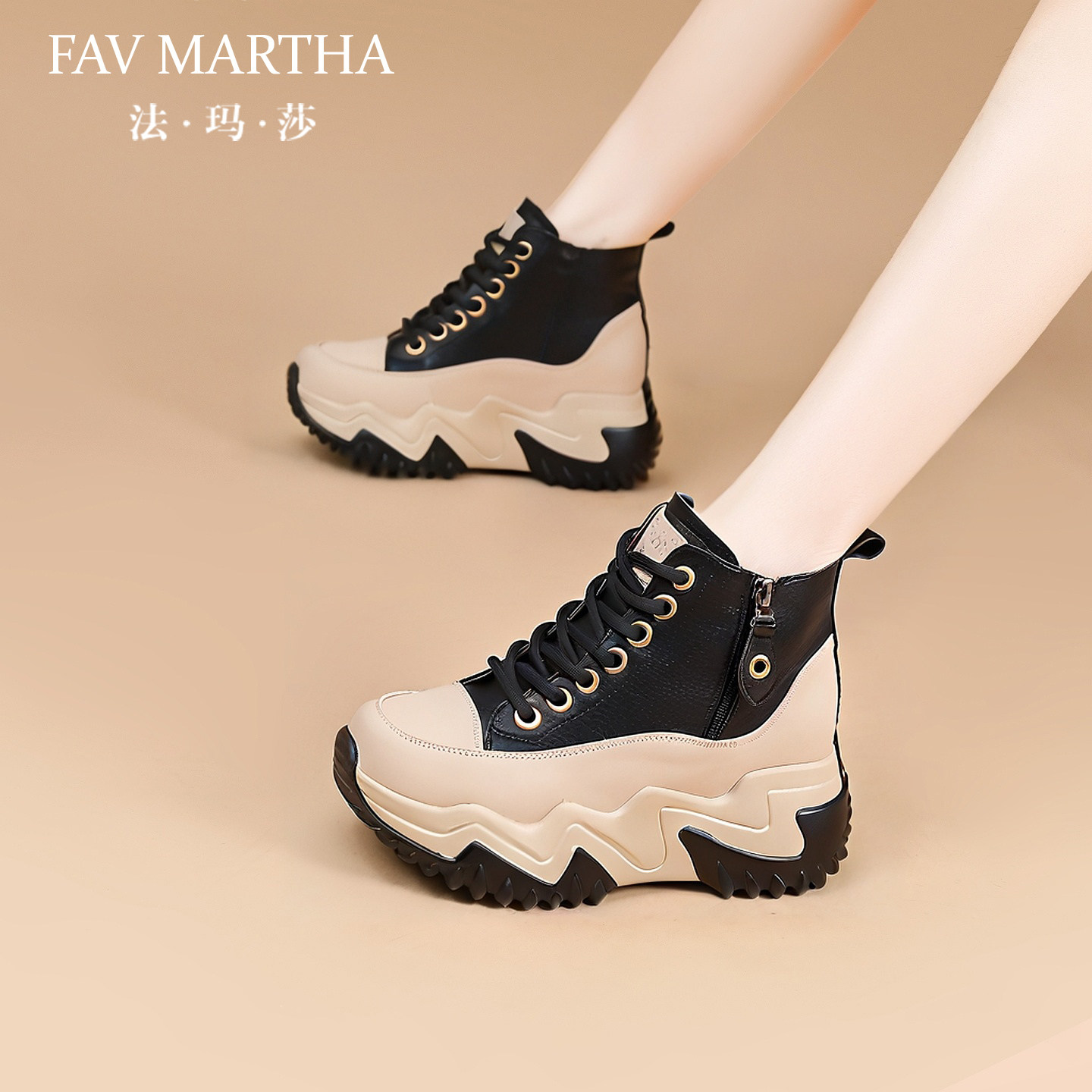 Famasa platform daddy shoes women's inner height small comfortable women's shoes autumn and winter new high-top sneakers
