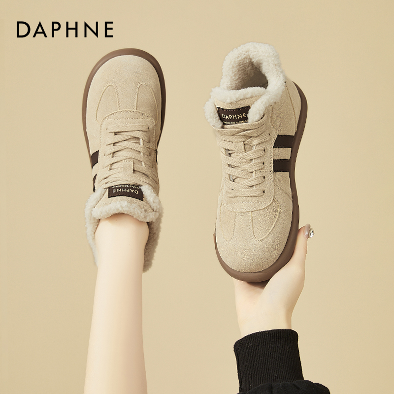 Hong Kong trendy brand leather snow boots women's 2025 spring and autumn new fleece high-top board shoes, lambswool cotton shoes, short boots