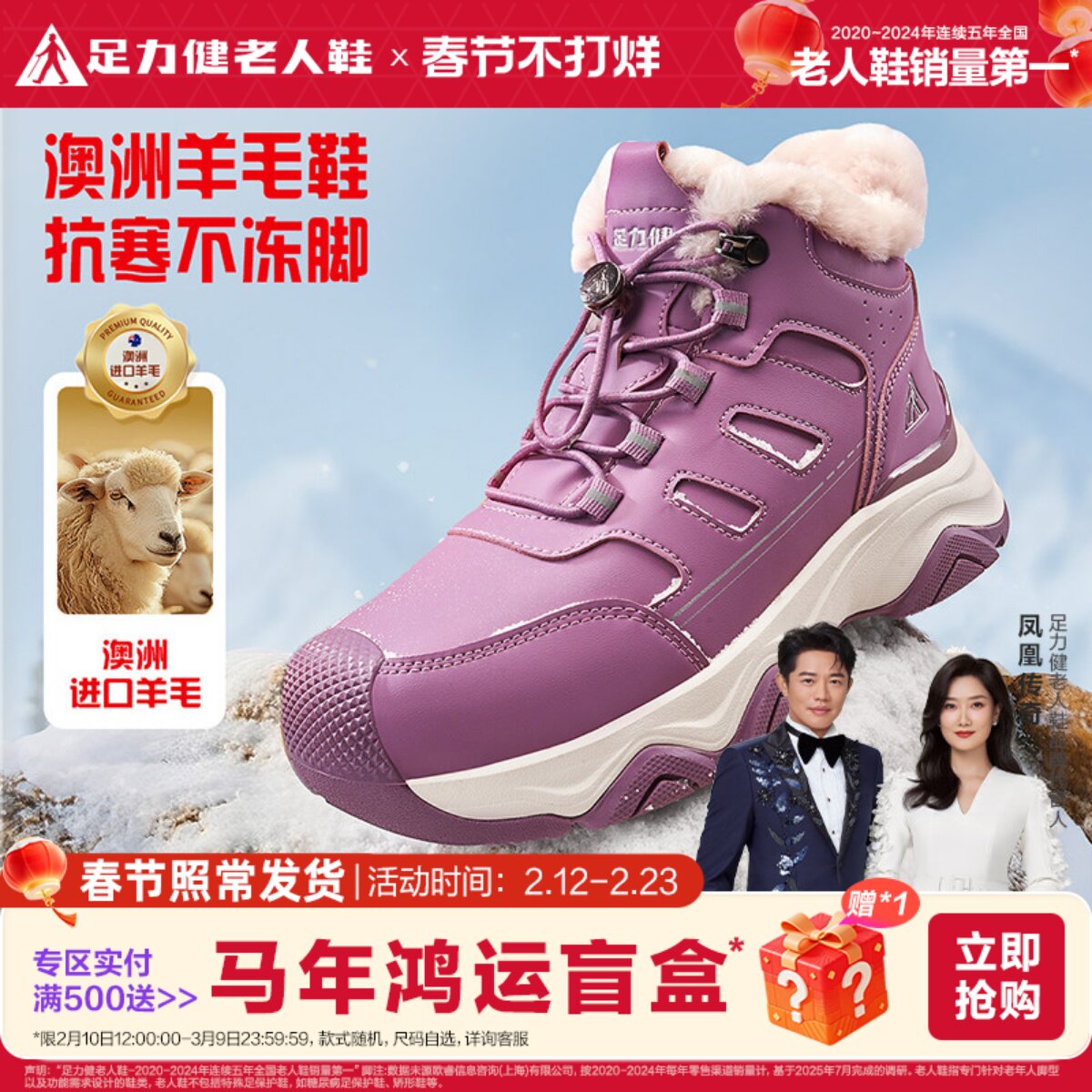 Zulijian flagship store 2025 winter senior cotton shoes, casual snow boots, plush mother shoes, warm shoes for the elderly