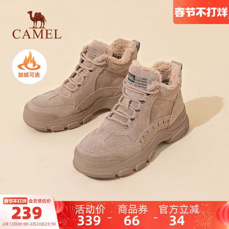 Camel women's shoes, fleece Martin boots for autumn and winter, women's platform warm snow boots, work boots, cotton shoes