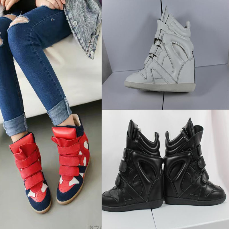 New 2025 inner height-increasing shoes women's high-top color-blocking round toe flat casual shoes autumn and winter Velcro sneakers for women