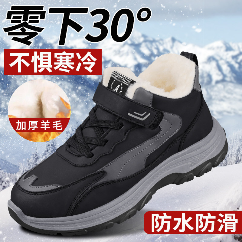 Old Beijing cotton shoes, men's winter fleece, thickened cold-proof middle-aged and elderly snow boots, Northeast waterproof wool dad cotton shoes