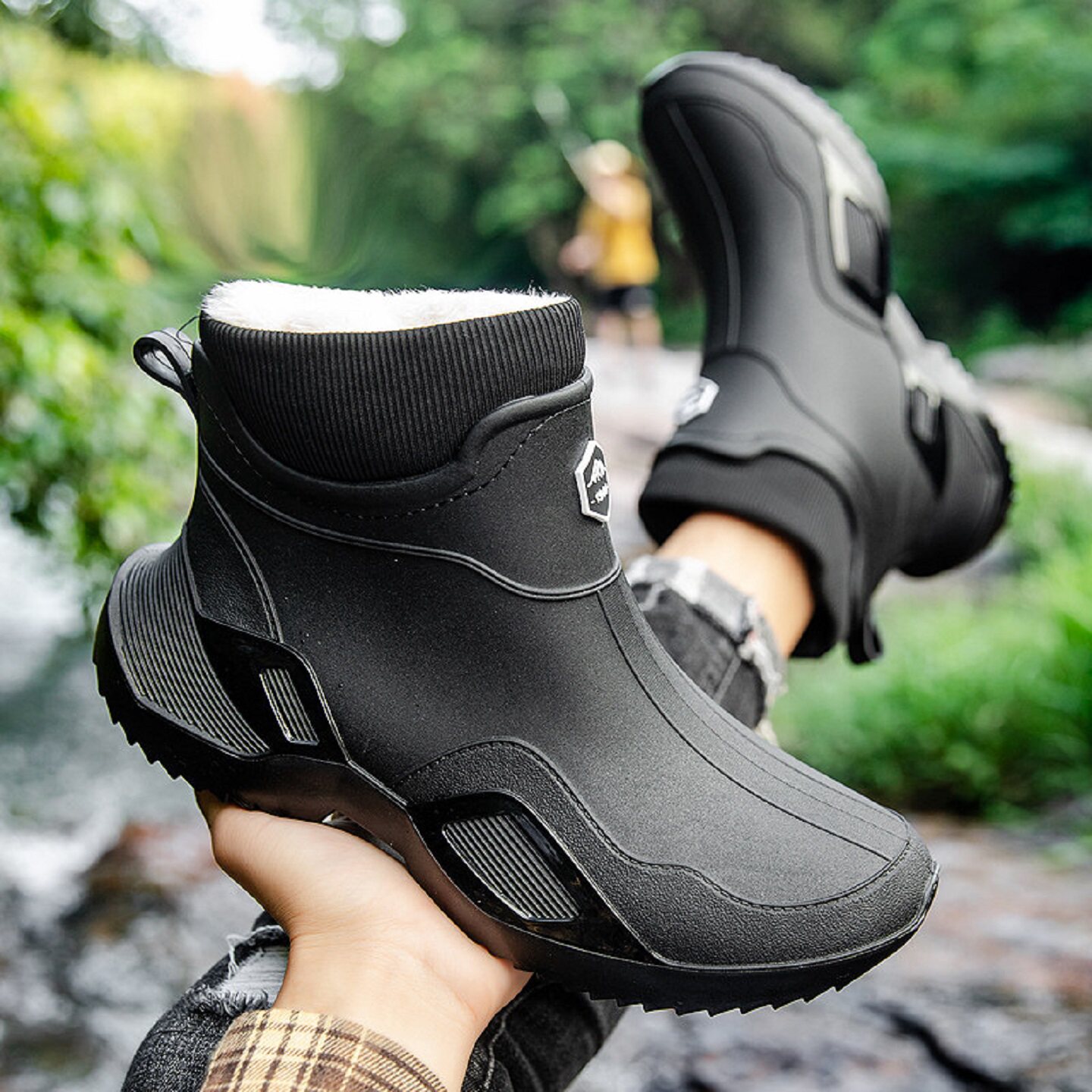 Rain boots for men spring and summer waterproof non-slip thick soles wear-resistant work high-top shoes for men outdoor fishing rain boots