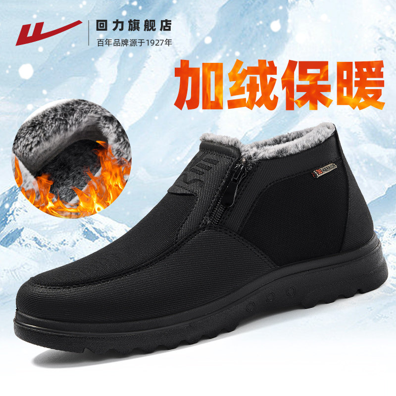 Huili old Beijing cloth shoes, winter cotton shoes, men's fleece, thickened middle-aged and elderly dad shoes, warm shoes for the elderly, snow boots