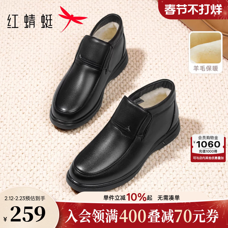 Red dragonfly dad cotton shoes in winter, middle-aged and elderly thickened wool warm high-top shoes, leather men's plus fleece shoes