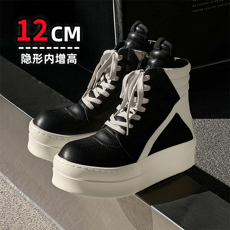 Genuine leather RO black and white inverted triangle high-top board shoes thick sole 12cm inner height increase men's shoes American high street shoes women's model