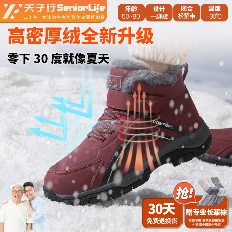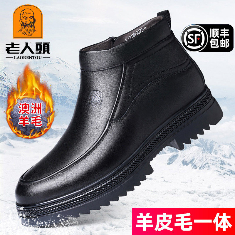 Foot strength shoes for the elderly, official flagship store, genuine winter fleece warm high-top cotton shoes, middle-aged dad leather shoes for men