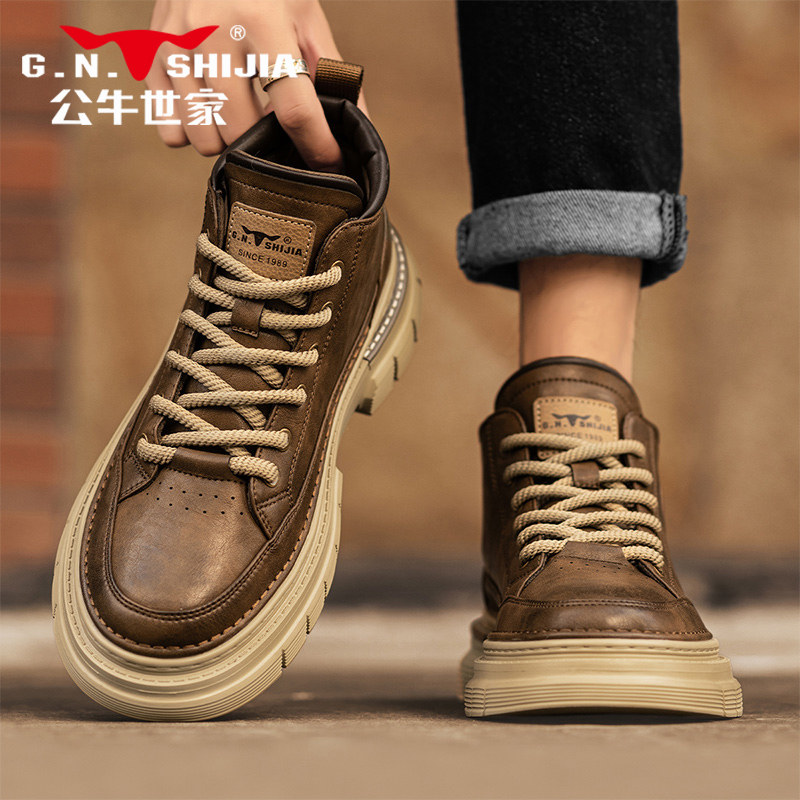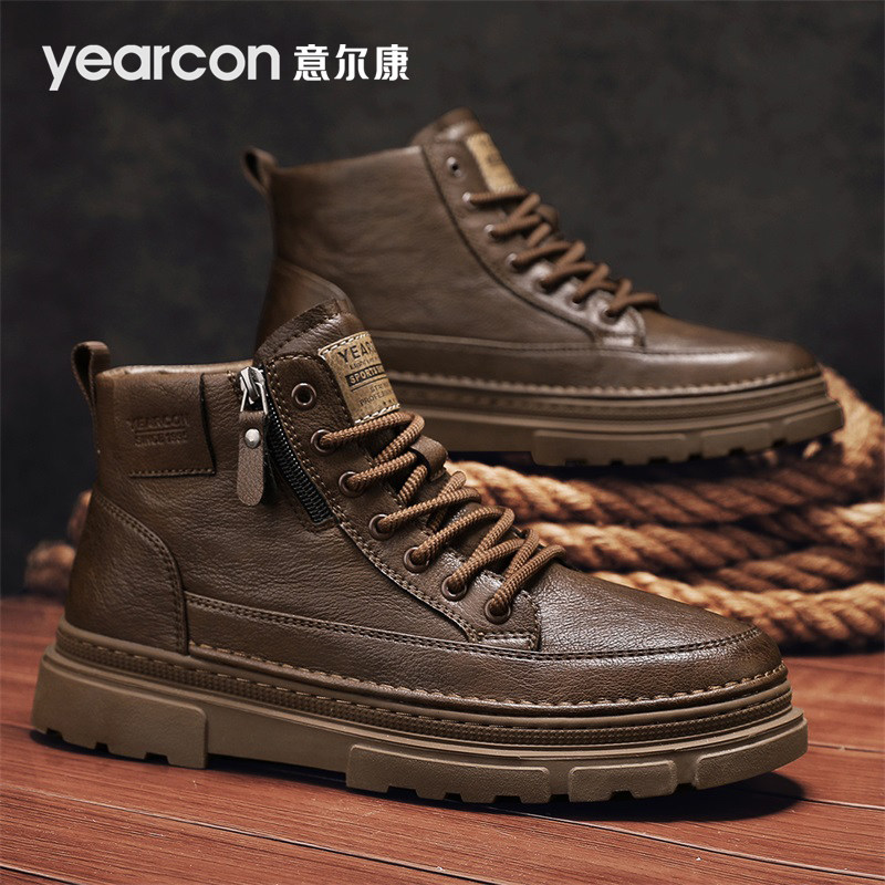 Yierkang men's shoes spring, autumn and winter 2026 new fleece explosive high-top leather panel shoes men's Martin boots large size