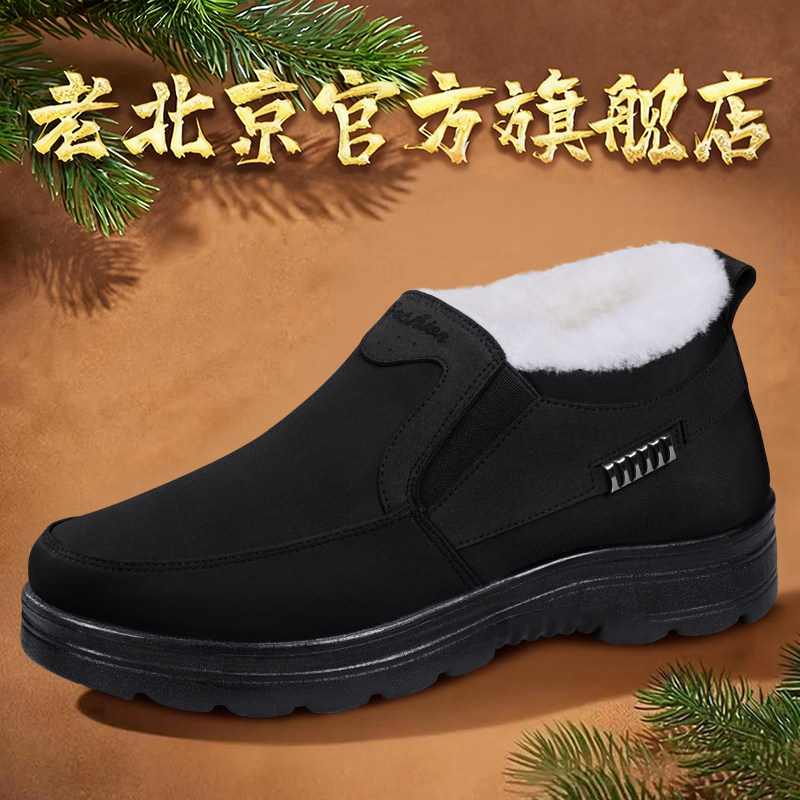 Old Beijing cloth shoes men's genuine winter new fleece thickened wool warm and non-slip middle-aged and elderly dad snow boots