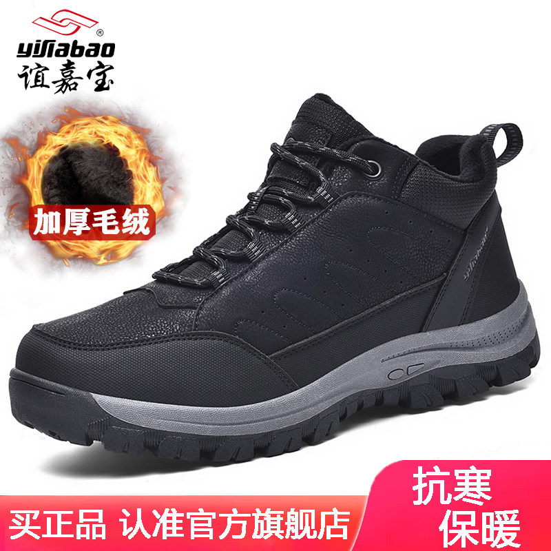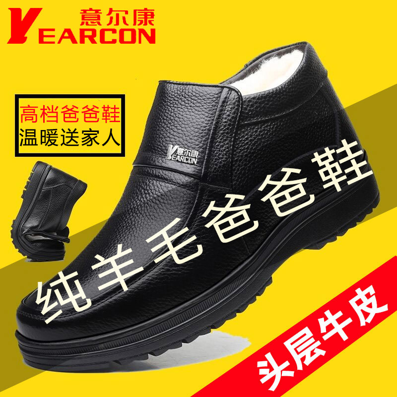 Yierkang men's leather high-top leather shoes winter fleece warm and non-slip soft soles casual middle-aged and elderly dad cotton shoes