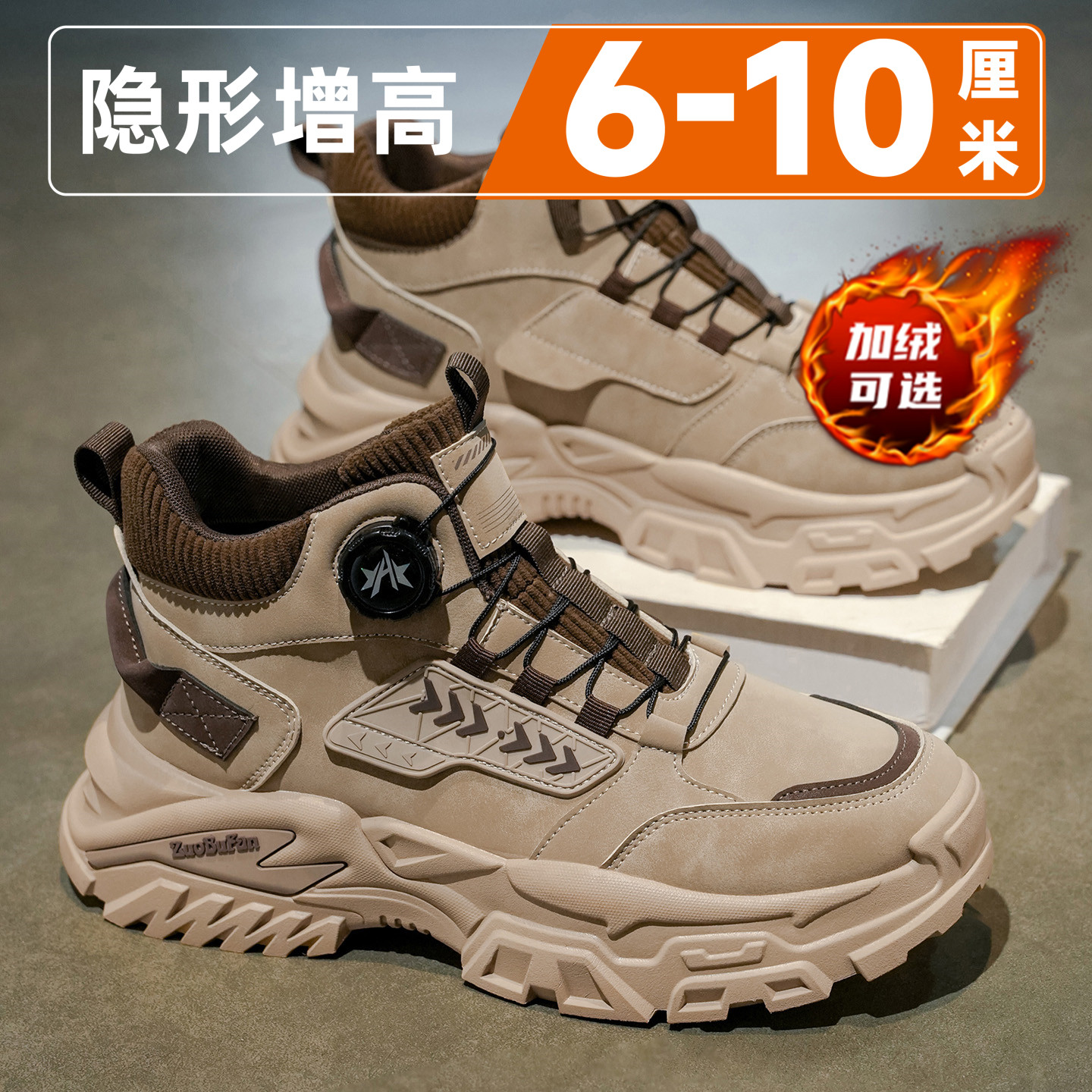 Men's shoes, Martin boots, high-top invisibility, inner height increase of 10cm, winter fleece, retro daddy shoes, casual platform work boots