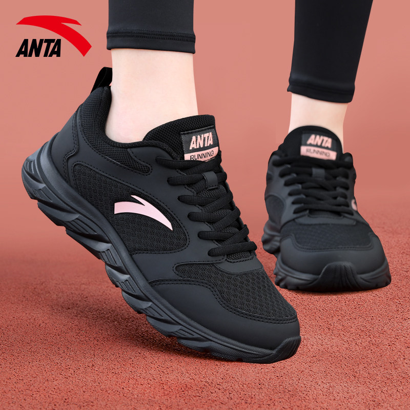 ANTA Sneakers 2026 Spring New Women's Shoes Black Waterproof Casual Jogging Shoes Soft Sole Non-Slip Running Shoes