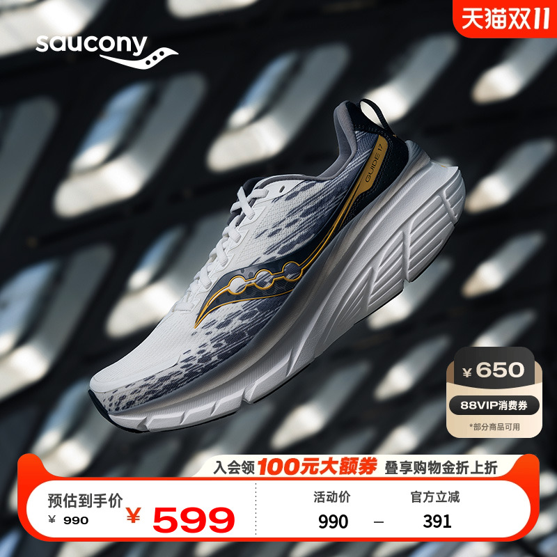 Saucony GUIDE17 guide supports men's and women's cushioned running shoes