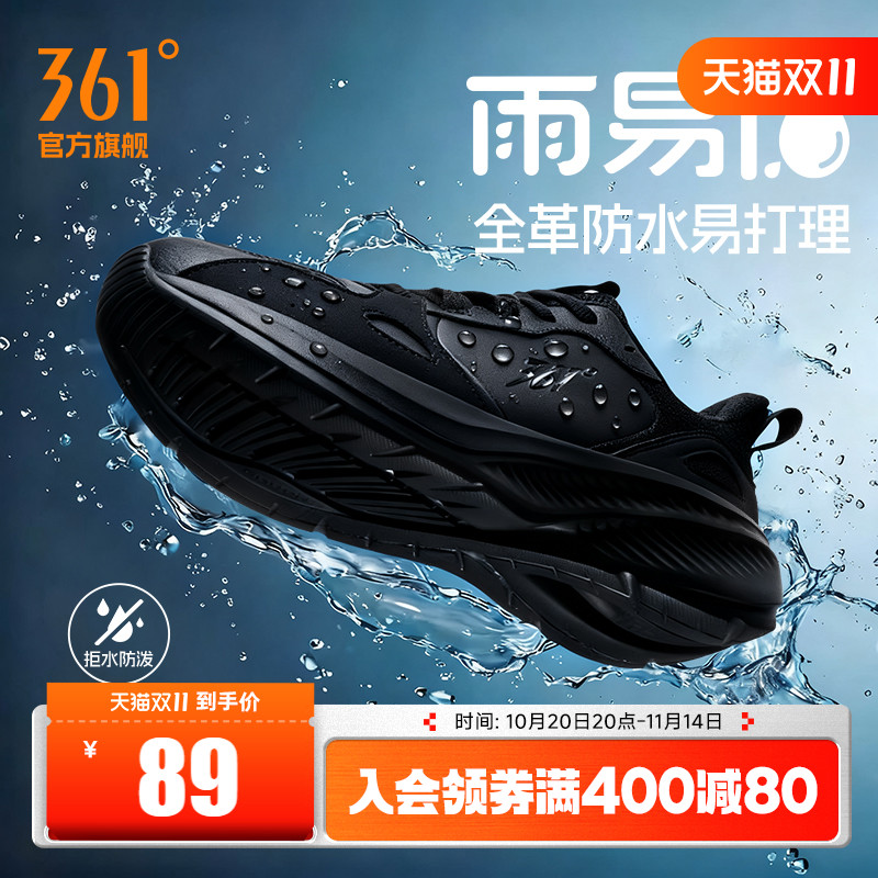 361 Men's Shoes Sneakers 2025 Winter Leather Waterproof Lightweight Shoes Mesh Casual Running Shoes Shock-Absorbing Running Shoes