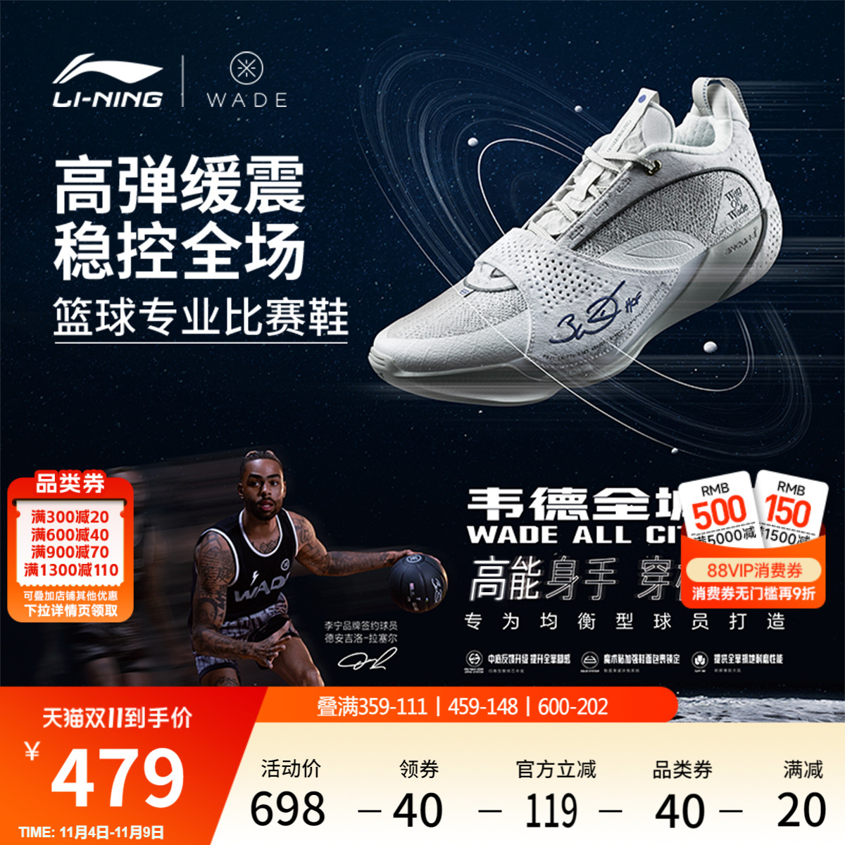 Li Ning Wade City 13 ENCORE丨Basketball shoes men's lightweight high resilience durable support practical sports shoes