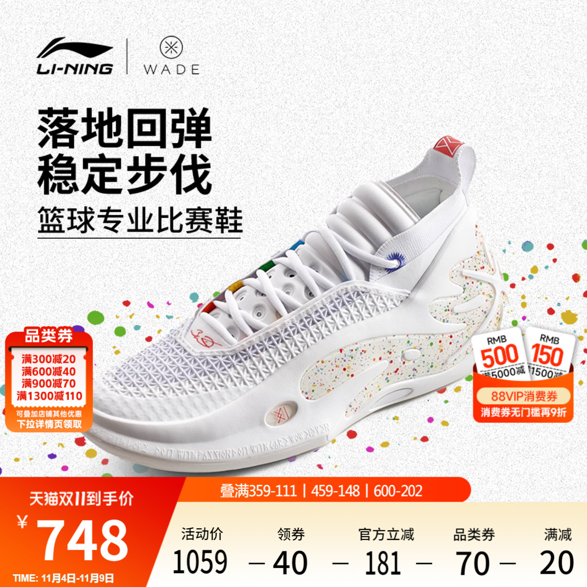 Li Ning Wade's Way 11 Rainbow丨WOW Basketball Shoes Men's Shoes New Practical Cushioning Rebound Professional Sneakers