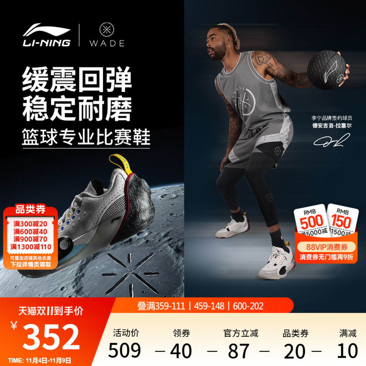 Li Ning Basketball Shoes Russell DLO 1 Men's Low-Top Shock-Absorbing Lightweight High Rebound Basketball Court Shoes