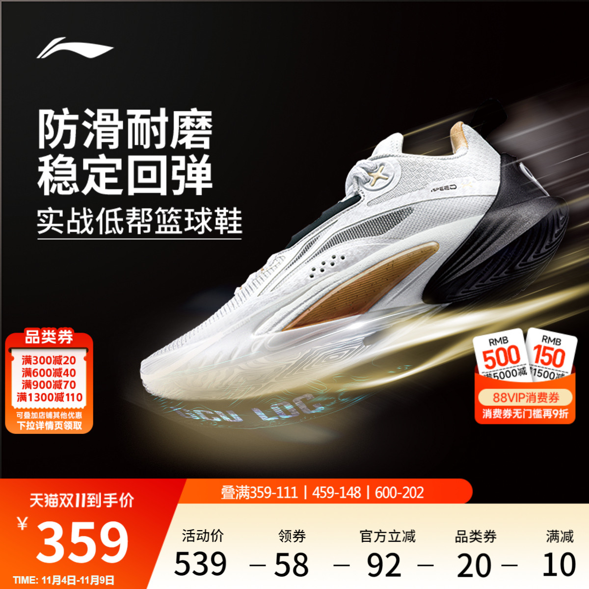 Li Ning anti-Wu BADFIVE | Basketball shoes low-top men's shoes wear resistance rebound grip men's off-court shoes sneakers