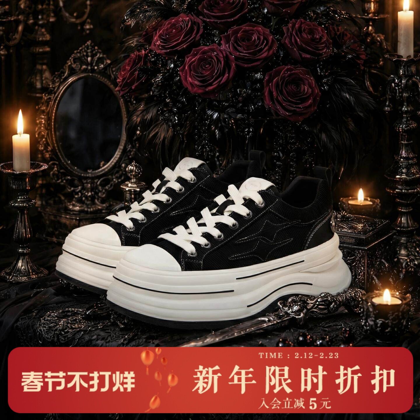 ABCICEY star black and white casual canvas shoes Mueller half-slip and slip platform heightened lace-up shoes