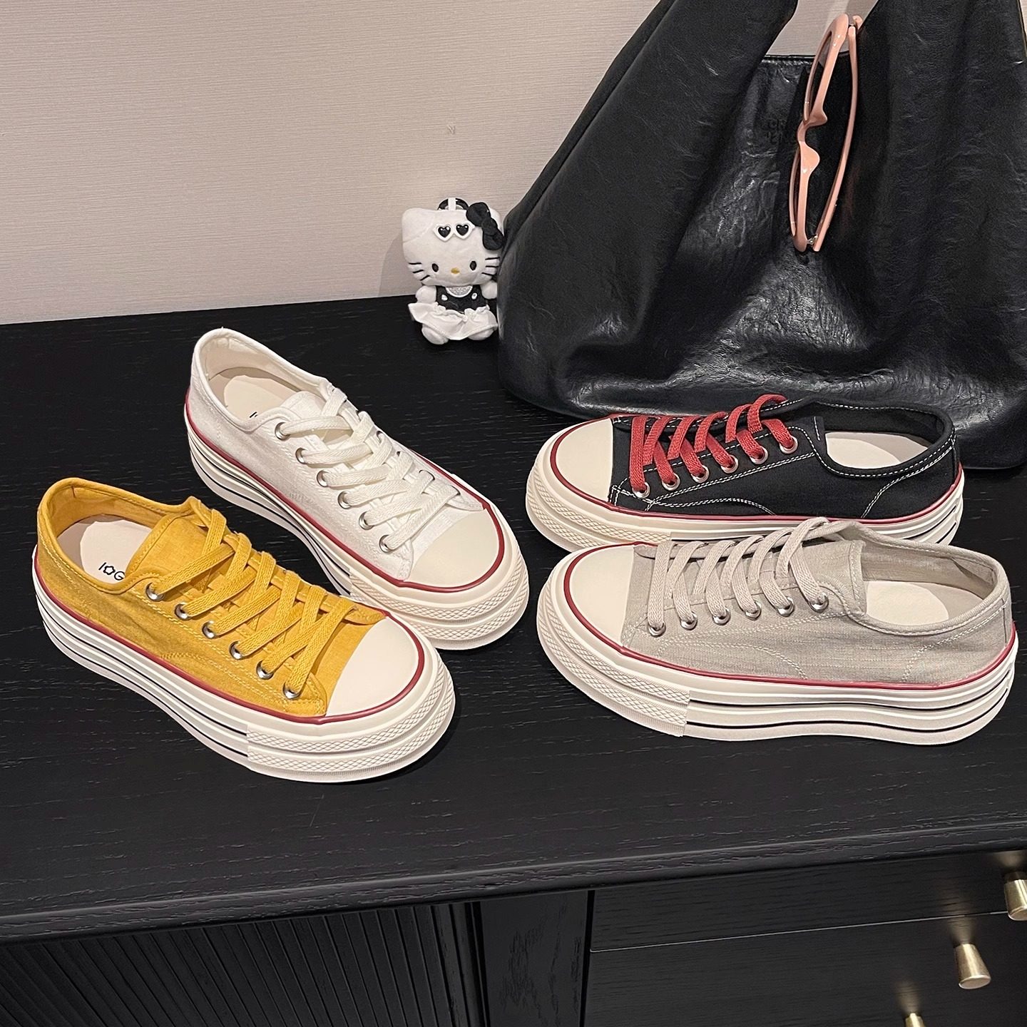 Hong Kong's heightened canvas shoes, spring and autumn new women's shoes, versatile platform white shoes, black casual board shoes, ins trend
