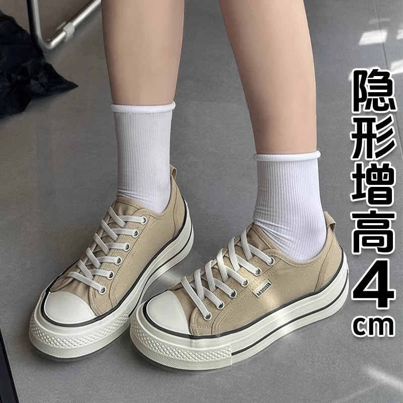 Hong Kong canvas shoes women's 2026 new low-top inner heightened platform white shoes, high-top muffin daddy shoes, sneakers