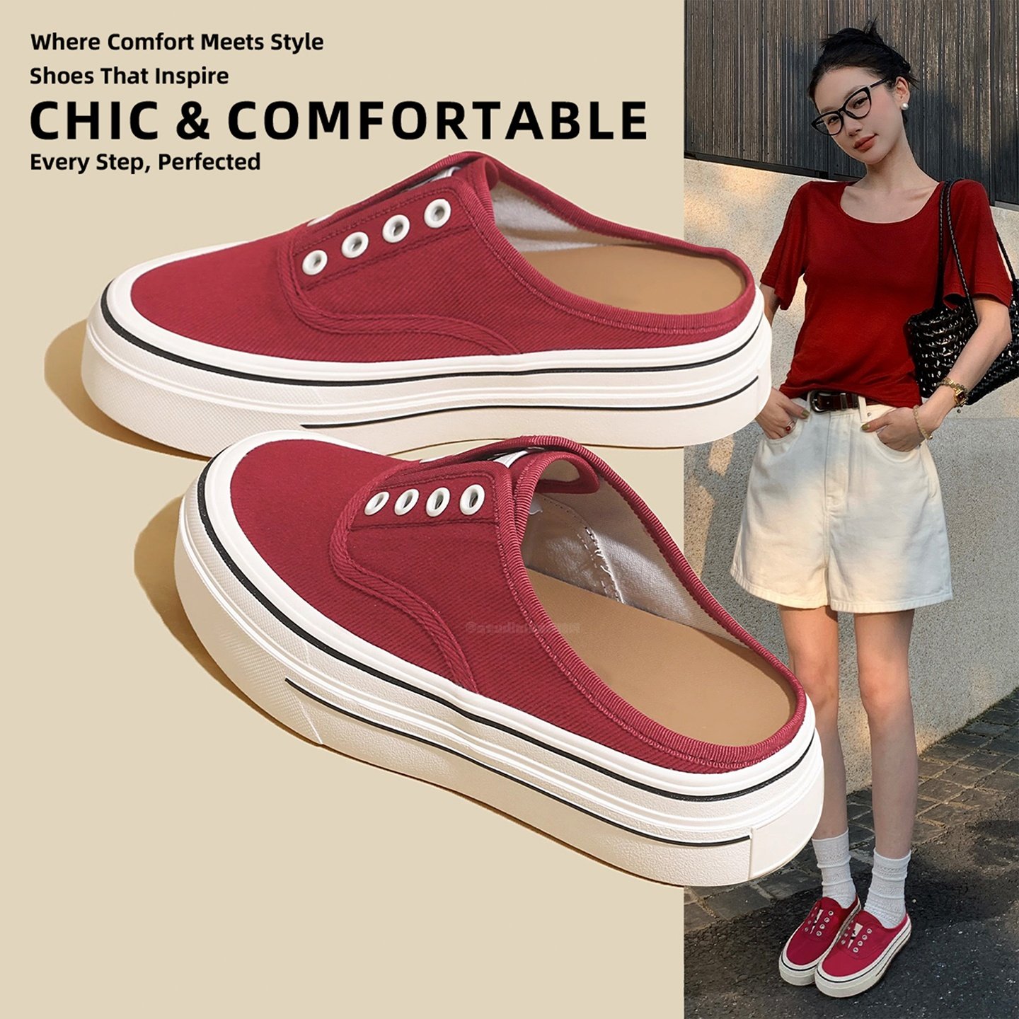 Hong Kong platform toe canvas shoes women's 2026 summer new wear versatile lazy person kicks soft-soled half slippers
