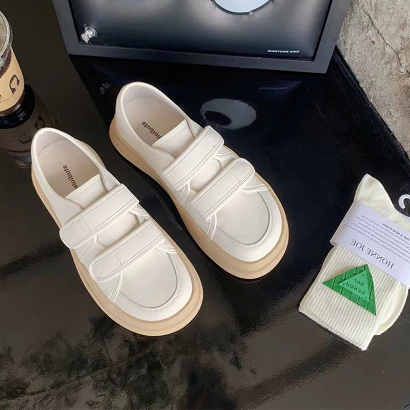 Hong Kong leather platform white shoes women's spring and autumn new Velcro round toe bun cute shoes casual sports board shoes