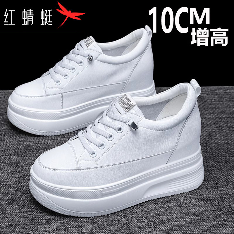 Red Dragonfly White Shoes Women's Shoes 2025 New Winter Fleece Explosive Sports Small 10cm Thick Sole Height Increased