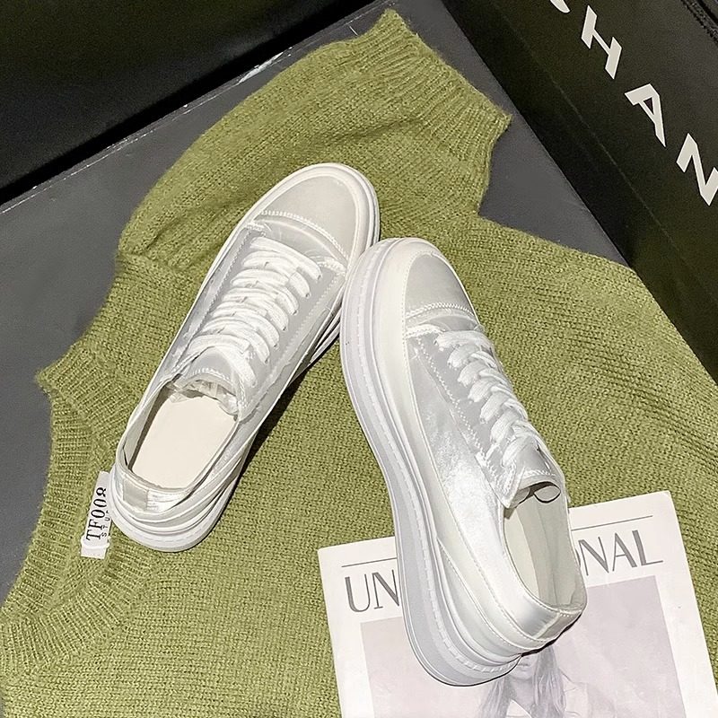 Hong Kong Silk Satin White Shoes Women's 2026 Spring and Autumn New Versatile Platform Height Increase Casual Sports Board Shoes Canvas Shoes