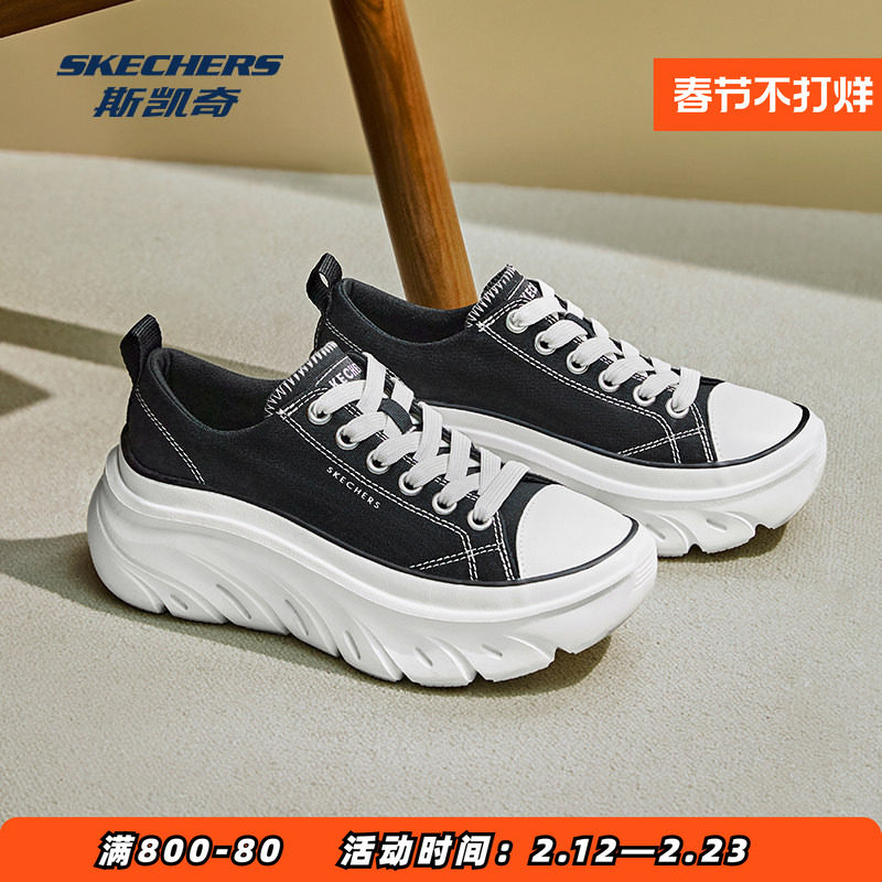 Skechers official website women's clay fashion casual breathable comfortable lightweight cushioning heightened platform canvas shoes wear-resistant and fashionable