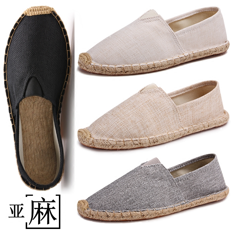 Spring and summer linen-soled straw fisherman's shoes, one-foot slack-off casual shoes, canvas shoes, personality men's and women's couple shoes