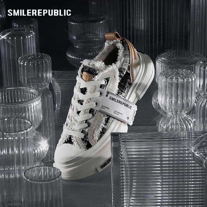 【Bi Wenjun Same Style】smilerepublic70s black and white coarse flower low-top platform heightened canvas shoe board shoes