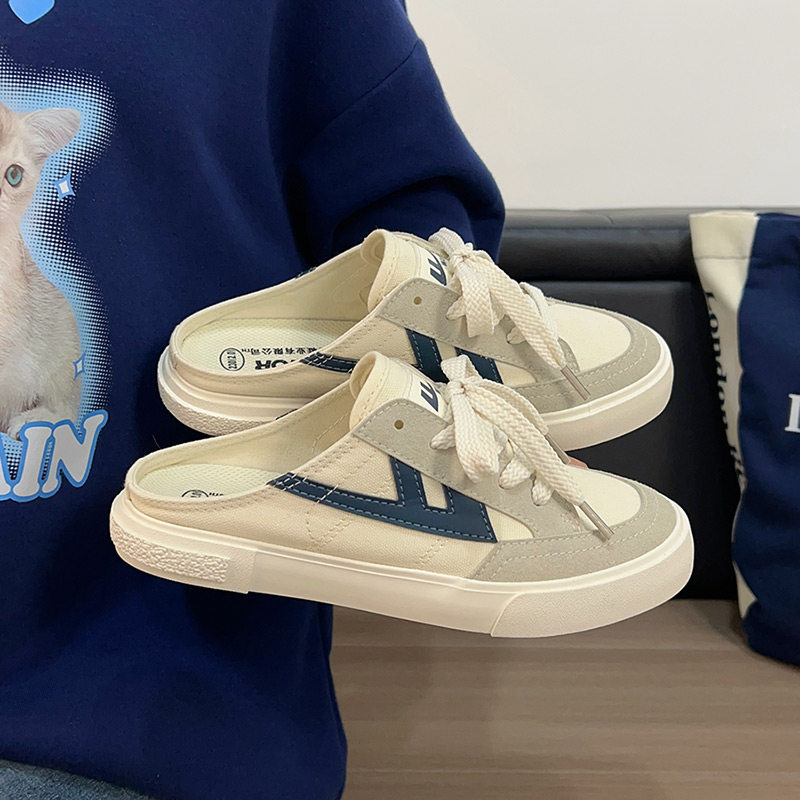 Pullback canvas shoes men's shoes 2026 new spring and summer breathable couple half slippers lazy people one-foot shoes men's board shoes