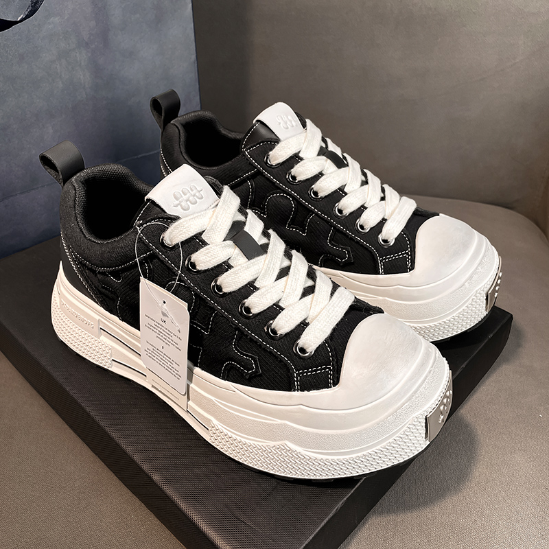 Wang Sulong, the same canvas shoes, black whale smiling shoes, couples, outdoor casual sneakers, women, heightened, big-headboard shoes, men