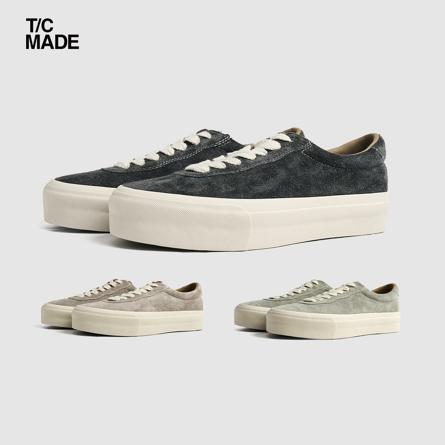 TCMADE Autumn & Winter 001P Cowhide Upper Suede Low-top platform heightened canvas shoes for men and women