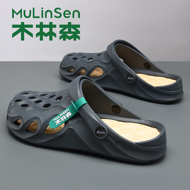 Mulin Sen Cave Shoes Men's Stepping on Poop Thick Sole Wear Versatile Height Couple Beach Toe Sandals in Summer Outside
