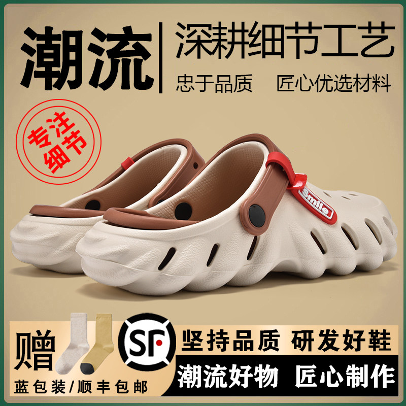 Hole shoes men's 2025 summer new non-slip outer wear beach EVA men's sandals thick-soled toe plus-size slippers