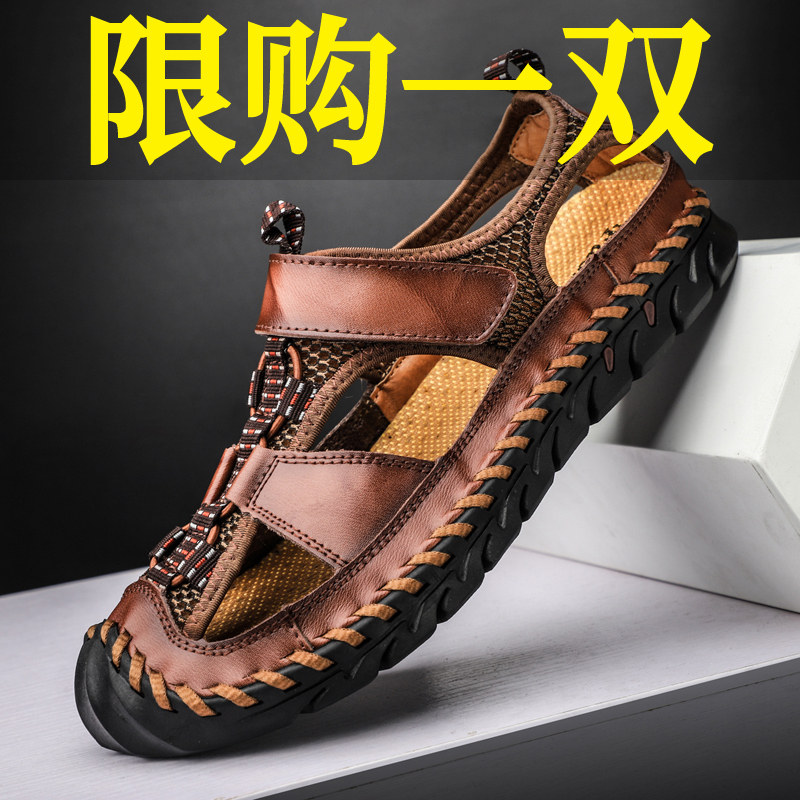 Flag bull sandals, men's leather soft soles, dual-purpose sandals, foot sweat, odor-proof, middle-aged and elderly dad beach shoes