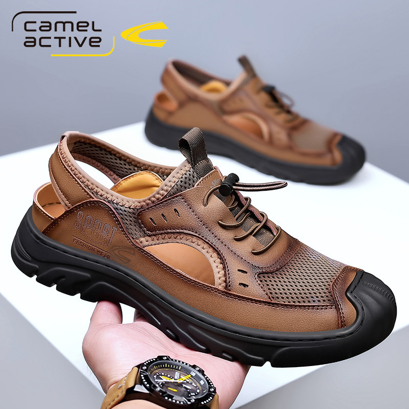 German camel dynamic sandals men's summer new mesh hollow casual shoes men's leather breathable dad hole shoes