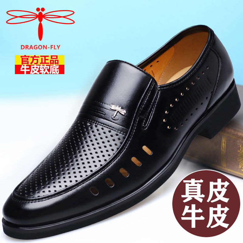 Dragonfly brand sandals men's leather hollow 2026 new middle-aged and elderly dad shoes with holes in summer men's sandals