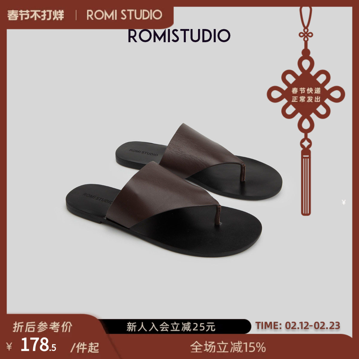 ROMI STUDIO "Simple Casual" Triangle Herringbone Flat Resort Slippers S3658