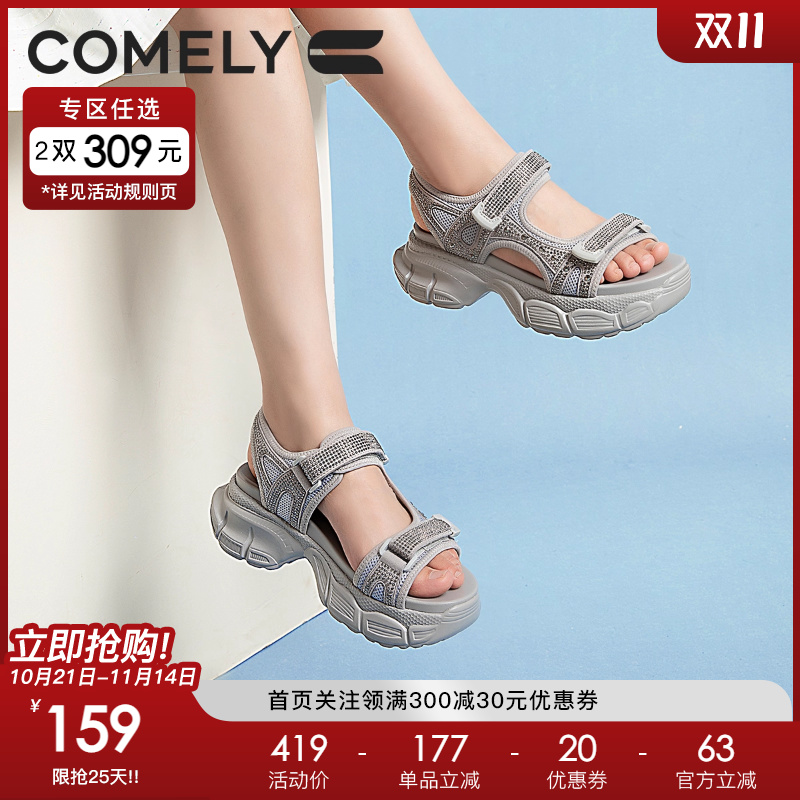 The same version of the counter 2025 new small fragrance feng rhinestone Velcro sandals women's four-strap round-toe open-toe platform beach shoes