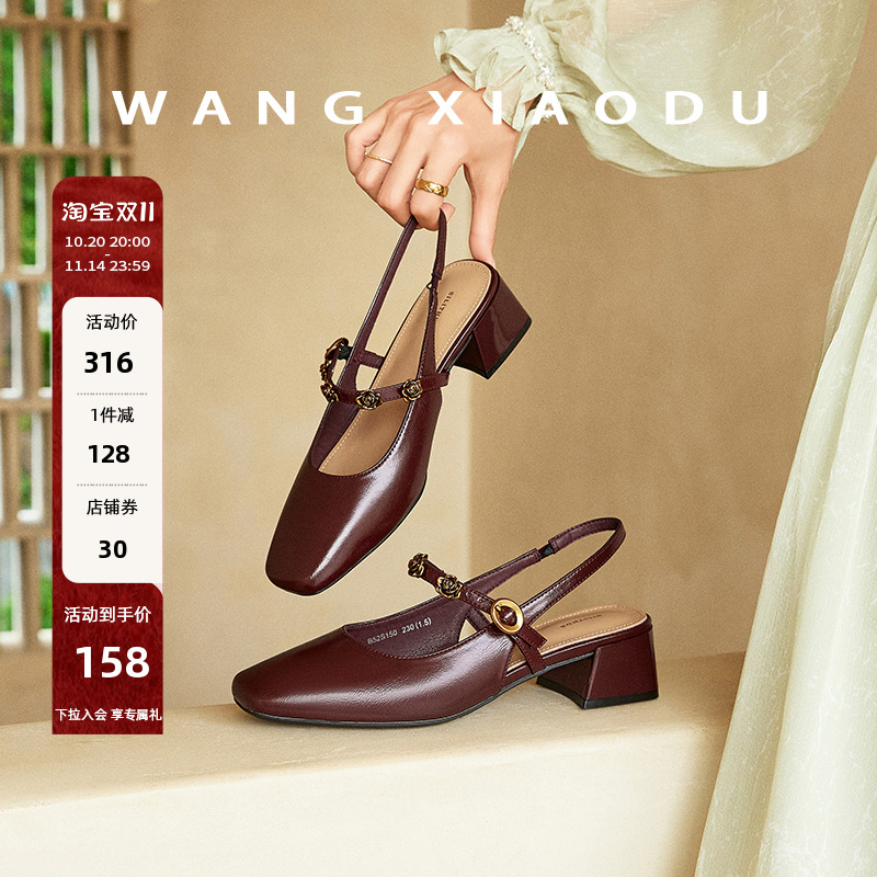 【Wang Xiaodu】Rose midsummer ● Red Mary Jane toe toe sandals women's back space summer new retro thick heels