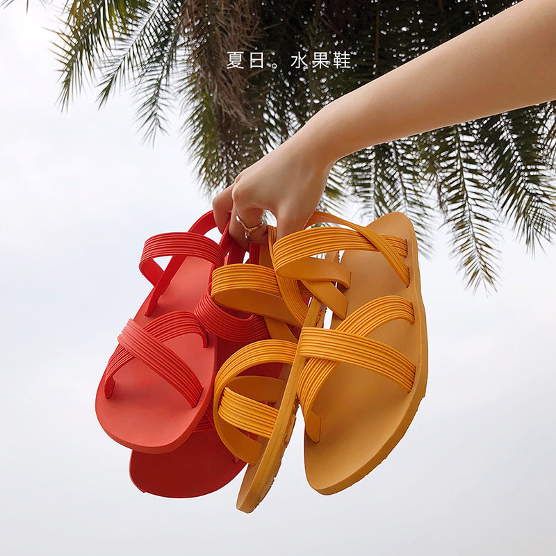 25 Summer casual fruit shoes flat magic sandals wear fashionable waterproof beach rain boots non-slip women's sandals
