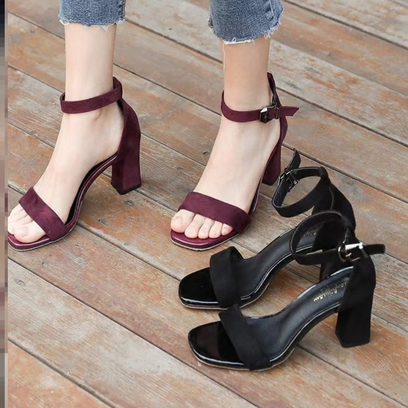 Sandals Women's Summer 2025 New Thick Heel Black Student Open Toe Buckle Roman High Heels Women's Comfort